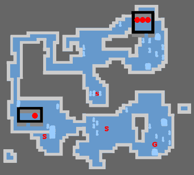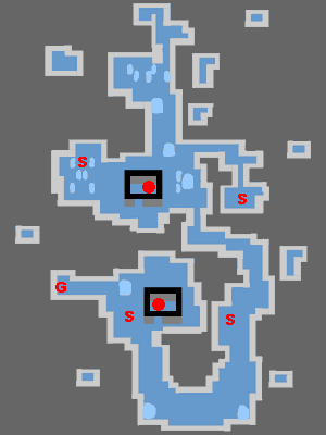 |  ▼特徴 浮遊城タイプで、お宝出現ポイントは3個。 Aタイプのマップなので(詳しくはこちら)お宝は全て確認しておきたい。 ▼出現モンスター <B1~B9> デスエレメンタル(2~4匹)、ブラックゴブリン(1~5匹) <B11~B19> デスエレメンタル(2~4匹)、デスマンティコア(3~4匹)、ブラックゴブリン(1~5匹) <B21~B29> デスマンティコア(3~4匹)、デビルウィザード(1~2匹)、デュエルナイト(1匹)+ユニコーン(1~2匹)、デュエルナイト(2~5匹)、ノッカー(1~5匹)、プロトタイプ(1匹) <B31~B39> アースプラント(1~2匹)、デビルウィザード(1~2匹)、デュエルナイト(2~5匹)、ブラッディアイ(1匹)、プロトタイプ(1匹)、ミスリルゴーレム(1匹)、メイジキメラ(1匹)、ヤマタノオロチ(1~2匹) |